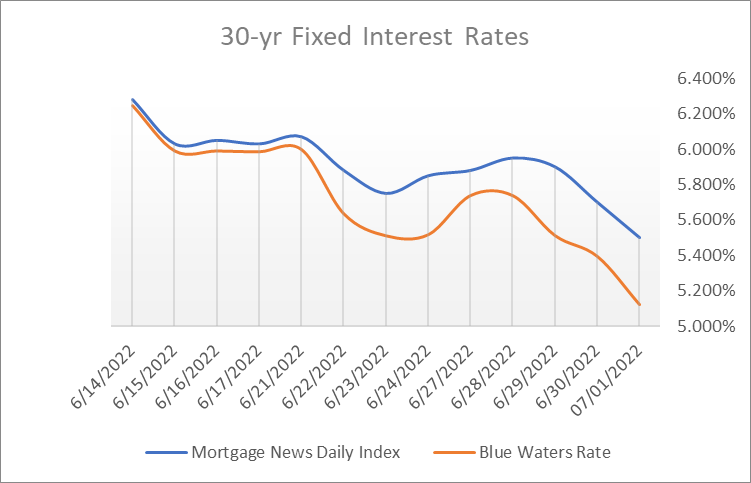 Mortgage rates fell .75% in the second-half of June, which was a welcome change to the steady increases we’ve seen for much of 2022. During that same time period, our lenders dropped their rates by nearly 1%, making ours some of the lowest around!